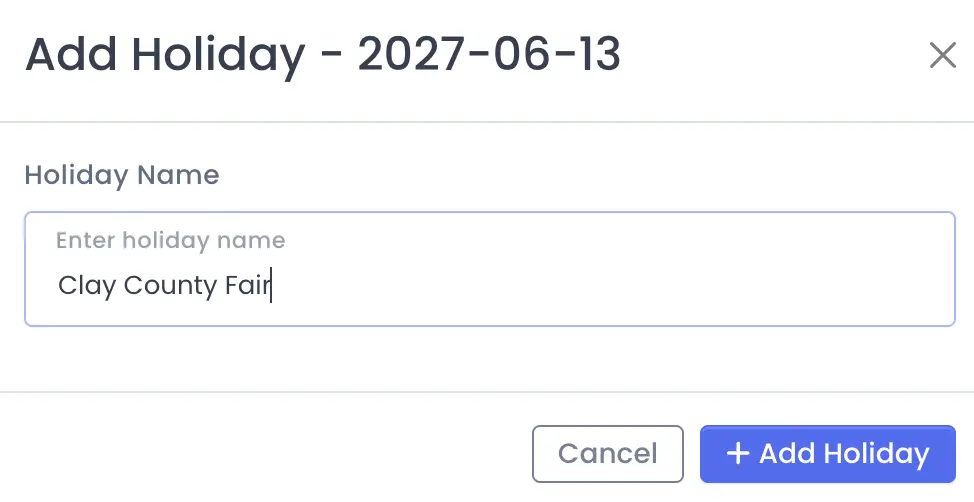Does your state, county or city have a holiday that is not represented in the national list? If so, create a custom holiday to help with tutoring holiday management.