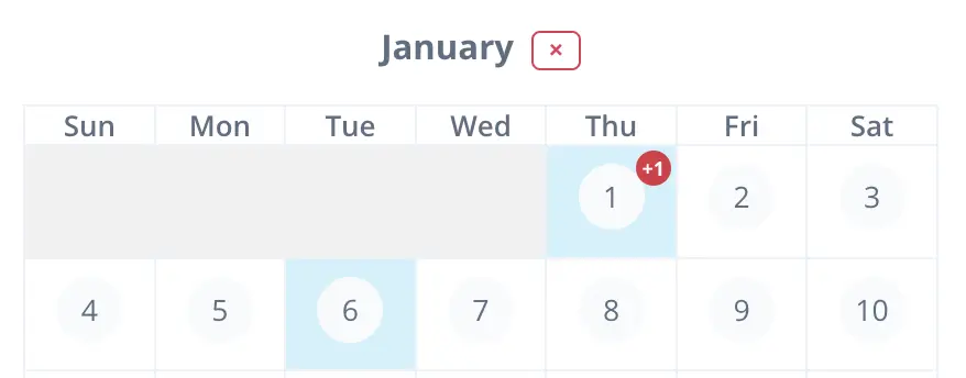The image below shows one holiday on January 6th, but two on January 1st as two countries holidays are loaded to the holiday skipper.