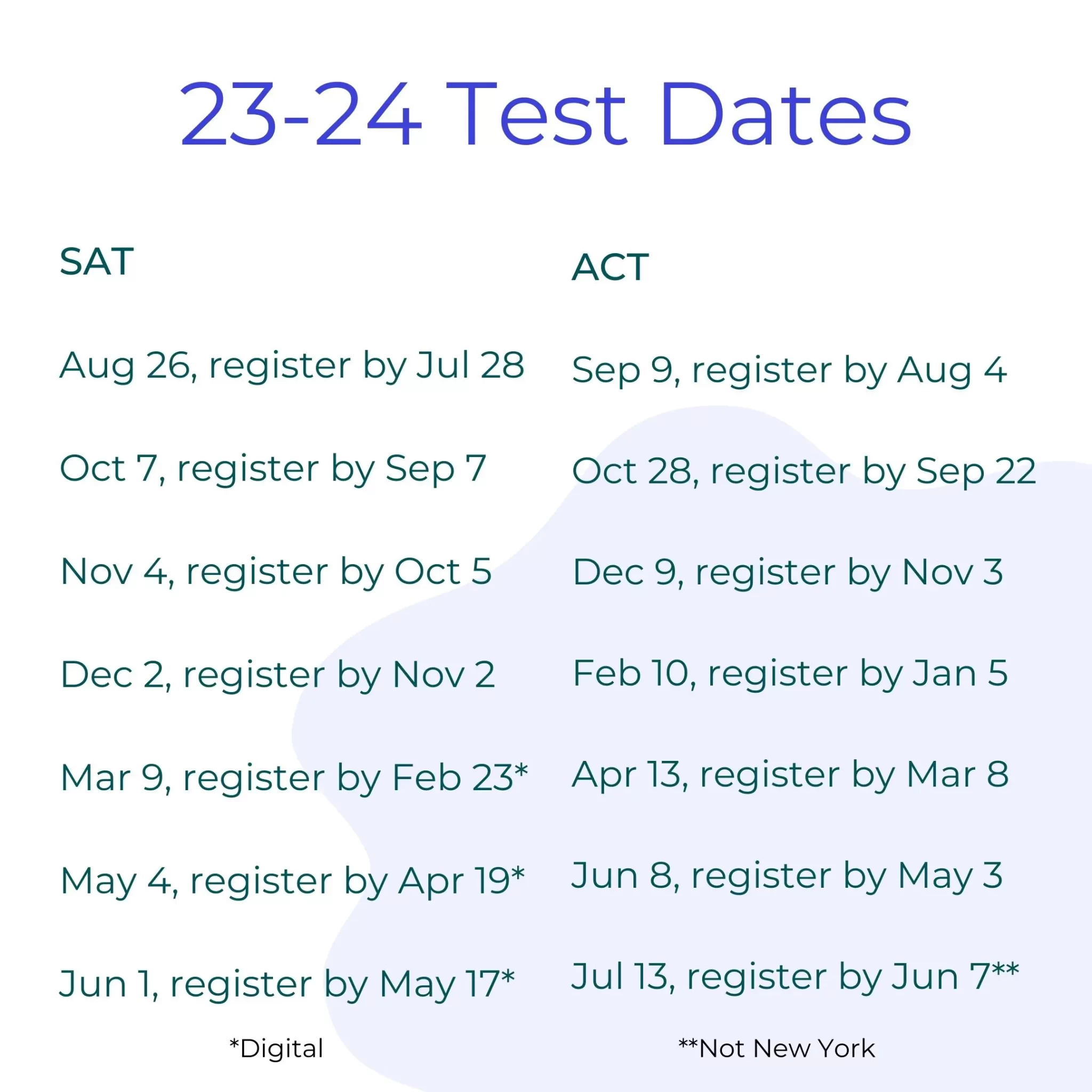 January 8, 2026 2026-01-08 11:03SAT & ACT Testing Dates for 23-24 School Year